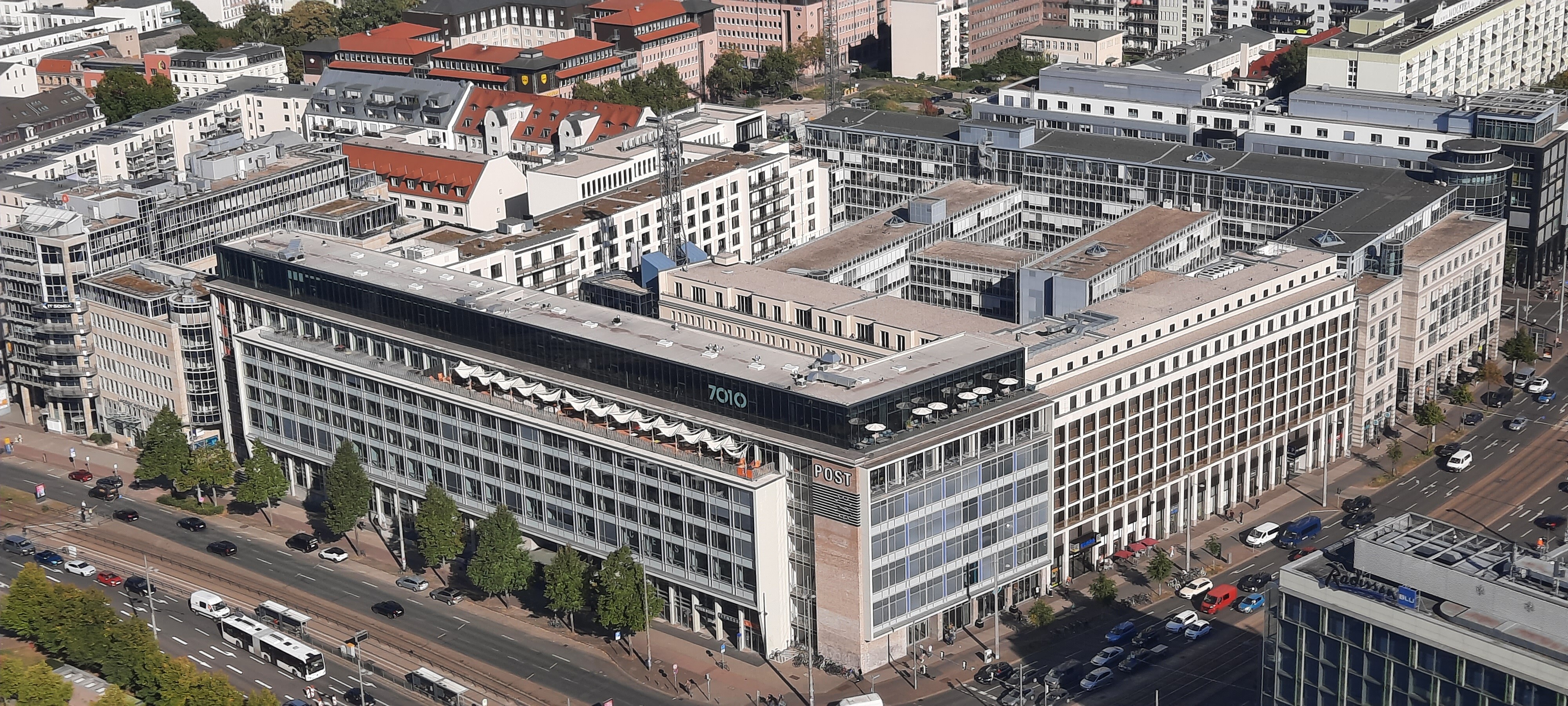 Der Gebäudekomplex „The Post“ ist untergliedert in die Bestandsgebäude der ehemaligen Hauptpost am Augustusplatz und einen Ersatzneubau am Grimmaischen Steinweg, dem alten Fernmeldeamt im Innenhof sowie zwei neue Gebäude im Innenhof und an der Querstraße. Unter allen neuen Gebäudeteilen wurde eine ein- bis zweigeschossige Tiefgarage geplant. Es wurde eine Mischnutzung aus Wohnungen, Appartements, Hotel, Gastronomie, Einzelhandel und Büro vorgesehen.
